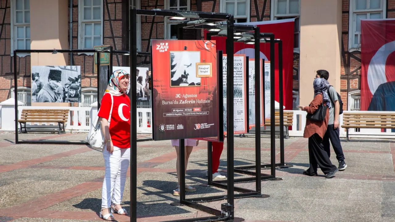 Bursa’da 30 Ağustos Zafer Bayramı coşkuyla kutlanırken, Büyükşehir Belediyesi tarafından hazırlanan ’30 Ağustos Bursa’da-Zaferin Hafızası’ ve ‘Bir Zafer Var’ sergileri vatandaşlara milli mücadele ruhunu yeniden yaşattı.BURSA (İGFA) - Bursa Büyükşehir Belediyesi tarafından ‘Bir Zafer Var’ temasıyla hazırlanan zengin içerikli etkinlikler, 30 Ağustos Zafer Bayramı coşkusunu tüm kente yayıyor. Kutlamalar kapsamında Kültür ve Sosyal İşler Dairesi Başkanlığı tarafından hazırlanan ’30 Ağustos Bursa’da-Zaferin Hafızası’ sergisi, Tayyare Kültür Merkezi yanındaki UNESCO Meydanı’nda izlenime açıldı. Döneme ait fotoğrafların ve gazete örneklerinin yer aldığı sergi, Bursalılardan büyük ilgi gördü. Zafere giden yolun adım adım anlatıldığı sergi, 30 Eylül’e kadar ziyaret edilebilecek.