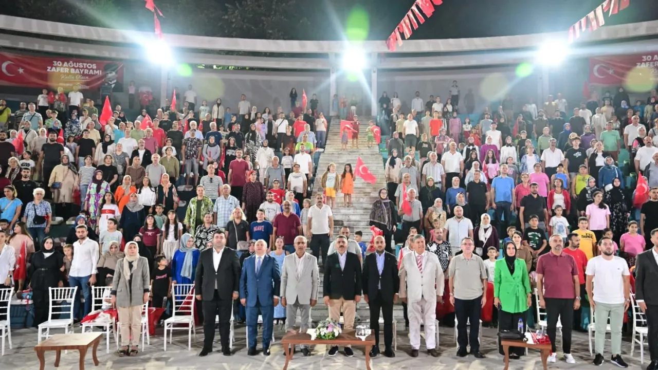 Türk Milleti’nin 30 Ağustos’ta iradesine boyunduruk vurdurmayacağını, istiklal ve istikbaline gölge düşürmeyeceğini bütün dünyaya ilan ettiğini söyleyen Başkan Yılmaz, “Gazi Mustafa Kemal Atatürk’ün sözleriyle 30 Ağustos Zaferi, “Türk Ordusunun, Türk subay ve komuta heyetinin yüksek kudret ve kahramanlığını tarihte bir daha belirleyen çok büyük bir eserdir.’ O gün atalarımızın yaktığı bağımsızlık meşalesi, bugün de aynı inançla, aynı heyecanla yolumuzu aydınlatmaya devam ediyor. Bu duygu ve düşüncelerle Cumhuriyetimizin kurucusu, Büyük Taarruzun Başkomutanı Gazi Mustafa Kemal Atatürk’ü, silah arkadaşlarını, bu toprakları bize vatan kılan tüm kahramanlarımızı, şehitlerimizi ve gazilerimizi rahmet ve minnetle anıyorum” ifadelerini kullandı. Daha sonra sahneye çıkan Türk Halk Müziği Sanatçısı Esat Kabaklı, seslendirdiği kahramanlık türküleriyle unutulmaz bir gece yaşattı.