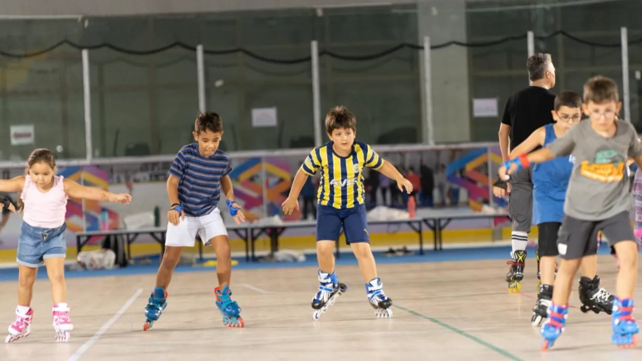 Yazın farklı spor branşlarında da hizmet sunulabilmesi amacıyla Bornova'daki Âşık Veysel Rekreasyon Alanı'nda bulunan Buz Sporları Salonu'nun zeminini yenileyen İzmir Büyükşehir Belediyesi’nin bu yıl ilk kez hayata geçirdiği tekerlekli paten kursları sürüyor. Çocuklar da veliler de eğitimden memnun.İZMİR (İGFA) - Bornova'daki Âşık Veysel Rekreasyon Alanı'nda bulunan Buz Sporları Salonu'nun zeminini yenileyen İzmir Büyükşehir Belediyesi, tekerlekli paten eğitimine devam ediyor. İzmirlilerin tesisten yıl boyunca daha verimli yararlanabilmesi için buz sporları sezonunun sona ermesiyle parke döşenerek yenilenen zeminde tekerlekli paten eğitimi alan minikler ve velileri hizmetten mutlu.