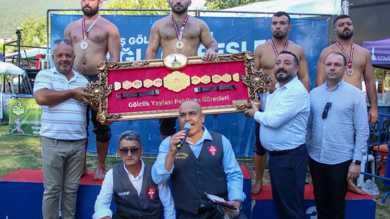 İzmir Büyükşehir Belediyesi, Ödemiş Belediyesi ve Türkiye Geleneksel Güreşler Federasyonu tarafından organize edilen Ödemiş Gölcük Yaylası Yağlı Güreşleri’nde sonuçlar belli oldu. Büyük heyecanın yaşandığı güreşlerin finalinde Erkan Taş, rakibi Tufan Güzel’i mağlup ederek başpehlivan unvanının sahibi oldu.İZMİR (İGFA) - İzmir Büyükşehir Belediye Başkanı Dr. Cemil Tugay’ın katıldığı Ödemiş Gölcük Yaylası Yağlı Güreşleri büyük heyecana sahne oldu. İzmir Büyükşehir Belediyesi, Ödemiş Belediyesi ve Türkiye Geleneksel Güreşler Federasyonu iş birliğiyle organize edilen turnuvada yaklaşık 500 pehlivan er meydanına çıktı.